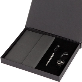 İçerik: Lale VIP 15x21 Defter, 3222 - Metal Roller Kalem, 4211 - Halatlı Metal Anahtarlık