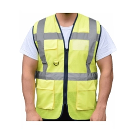 100% Polyester Tricot 130 gsm, 100% Polyester Mesh 130 gsm •CE Sertifikalı •EN ISO 20471 •Görünürlüğü arttıran reflektif bant •Derin saklama cepleri •Telefon cebi •Telsiz halka •Şeffaf kimlik cebi •Ekstra hafif